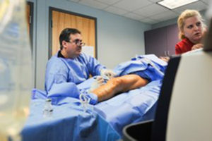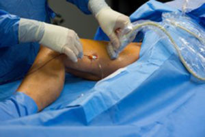 The most common treatment for the large varicose veins is catheter based ablation procedures. This is done by accessing the vein with a needle, making a small incision and inserting a thin catheter into the vein. Heat is then applied, either by radio frequency or laser which causes the collagen within the vein walls to expand and contract until they shrink and shut down. Your body then turns the vein into scar tissue and reabsorbs it. All of these procedures are done under ultrasound guidance by Dr. David C. Faber and are done with just local anesthetic. These minimally invasive procedures cause little or no pain and provides superior results.